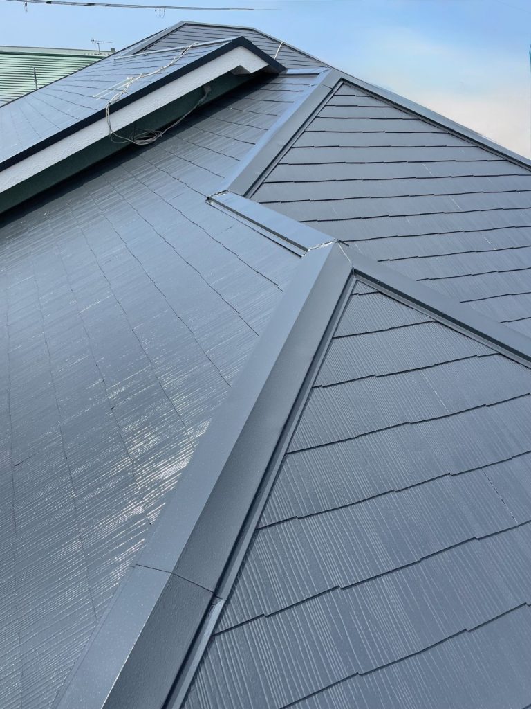 屋根色はグリーンから濃いグレーにトユをこげ茶から白に変更し爽やかな印象に仕上がりました。