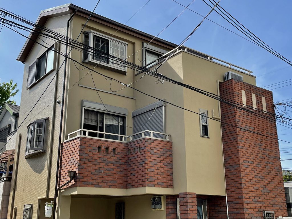 F様は今回初めての塗り替えでしたが、外壁はモルタルとサイディングとレンガタイルの3つの素材からなっています。